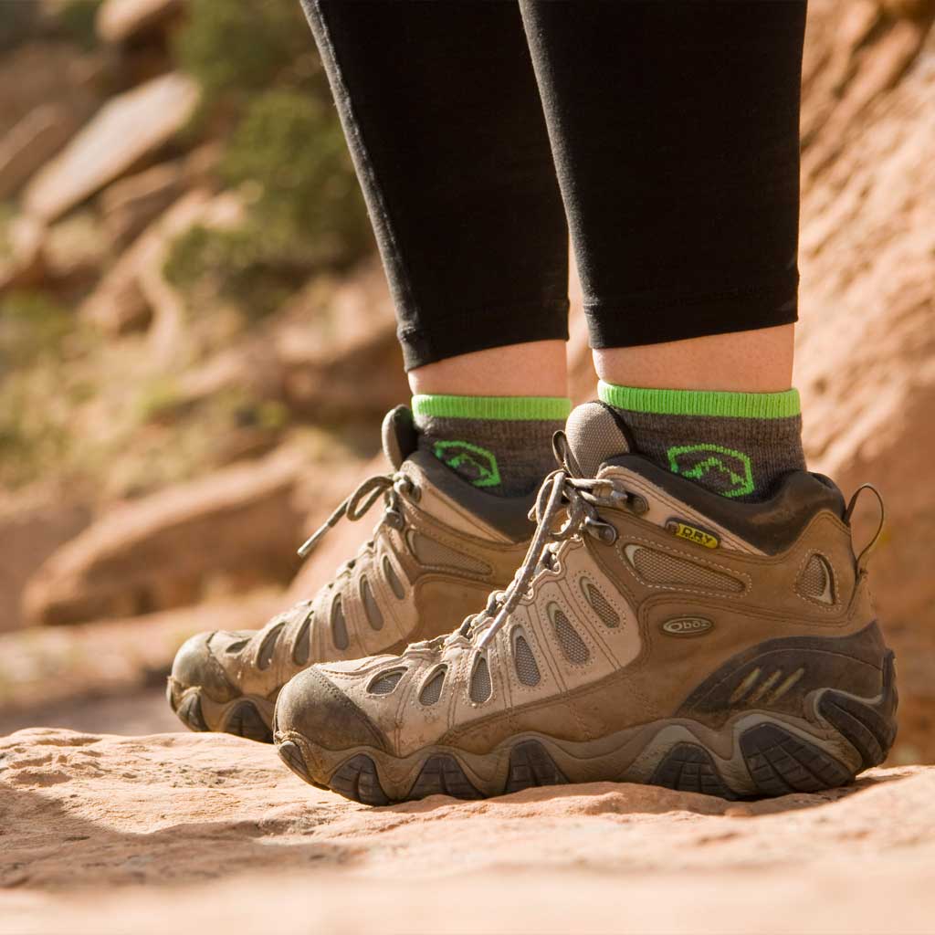 ▪︎ Brushy trails, sandy washes, and dusty roads threaten to hinder your run, but our itch-free merino wool and ¼ top height create a smooth fit while keeping trail debris out.